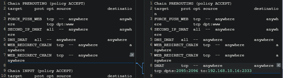并在filter表的FORWARD链上对添加目的地址为设定内部IP和端口的数据包进行接受