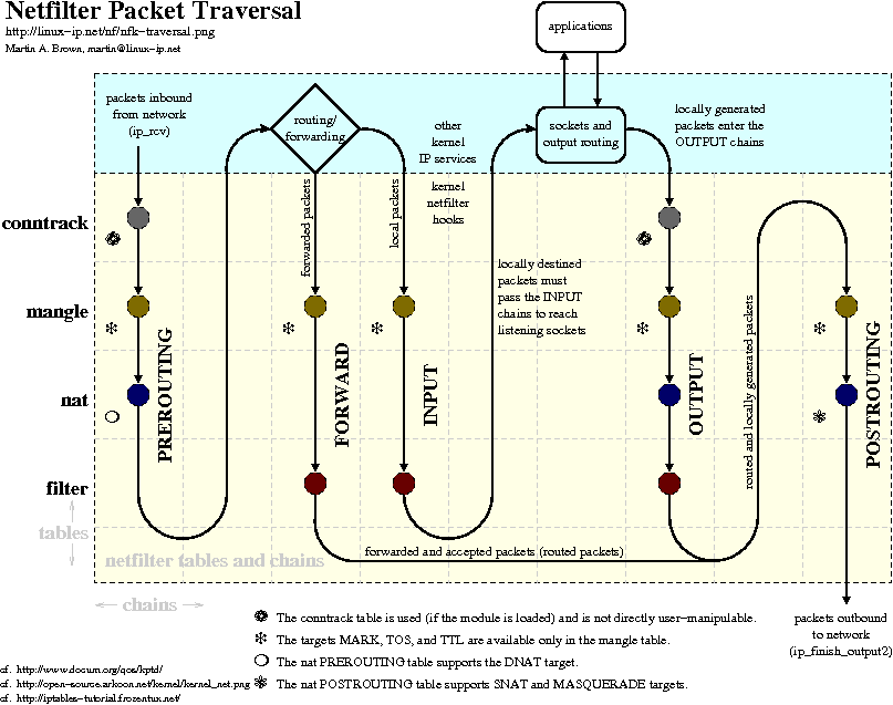 在2003年的 Linux 2.6 内核版本中 Netfilter 集成了更强大的功能:连接跟踪(Connection Tracking)和状态检测(Stateful Inspection),使得 Linux 能够跟踪网络连接的状态(新建、已建立、相关等),大大增强了对复杂流量的管理能力